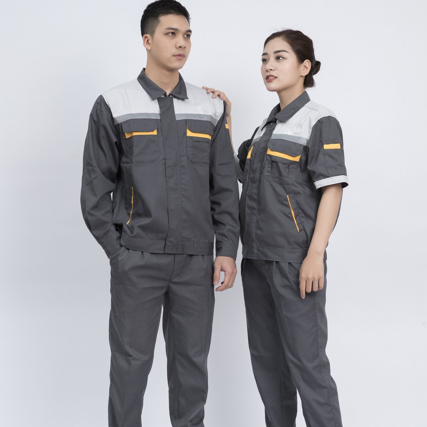 (Mẫu đồng phục bảo hộ lao động màu Xám Đậm phối Xám nhạt– form chung cho nam nữ)